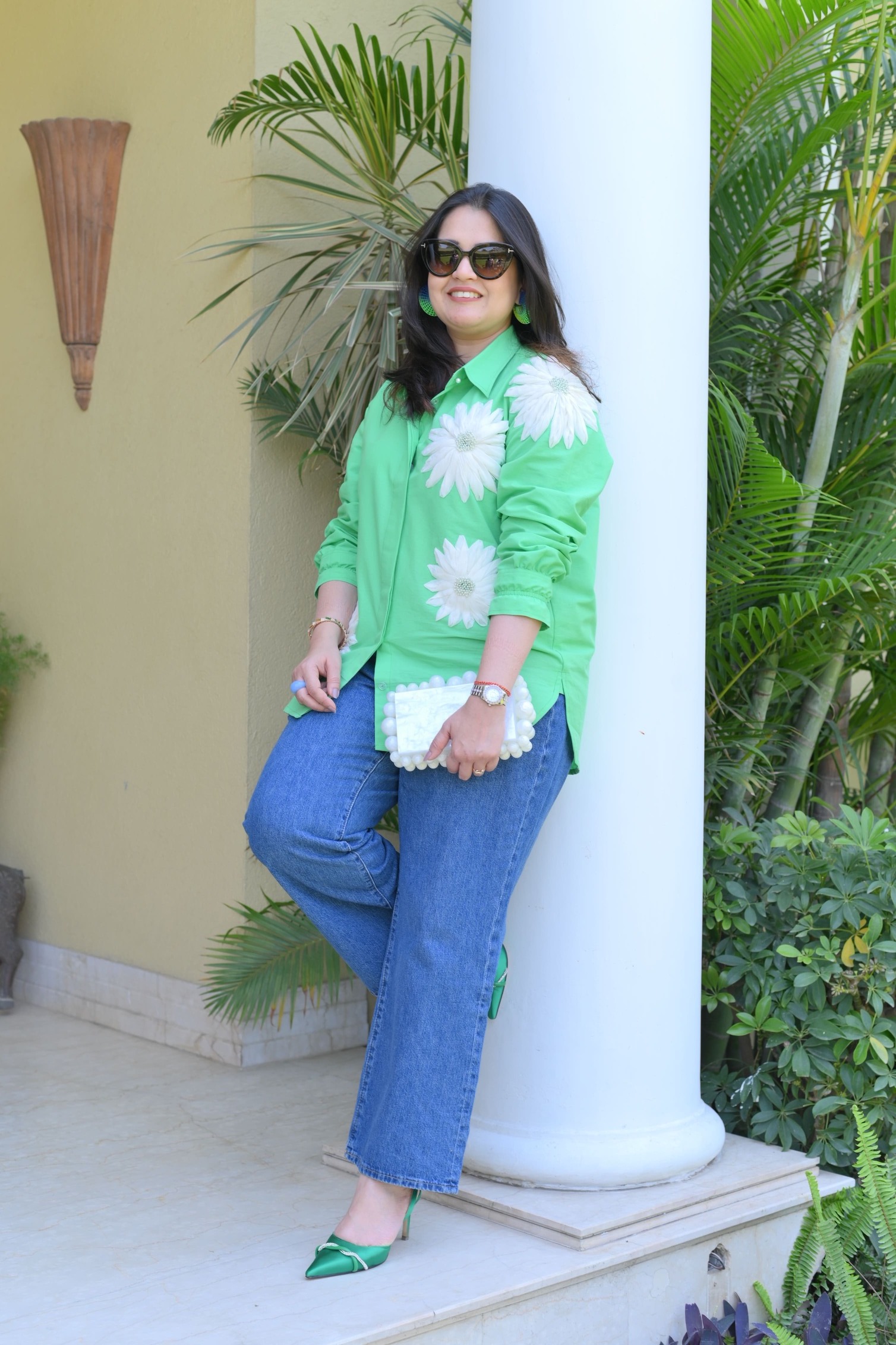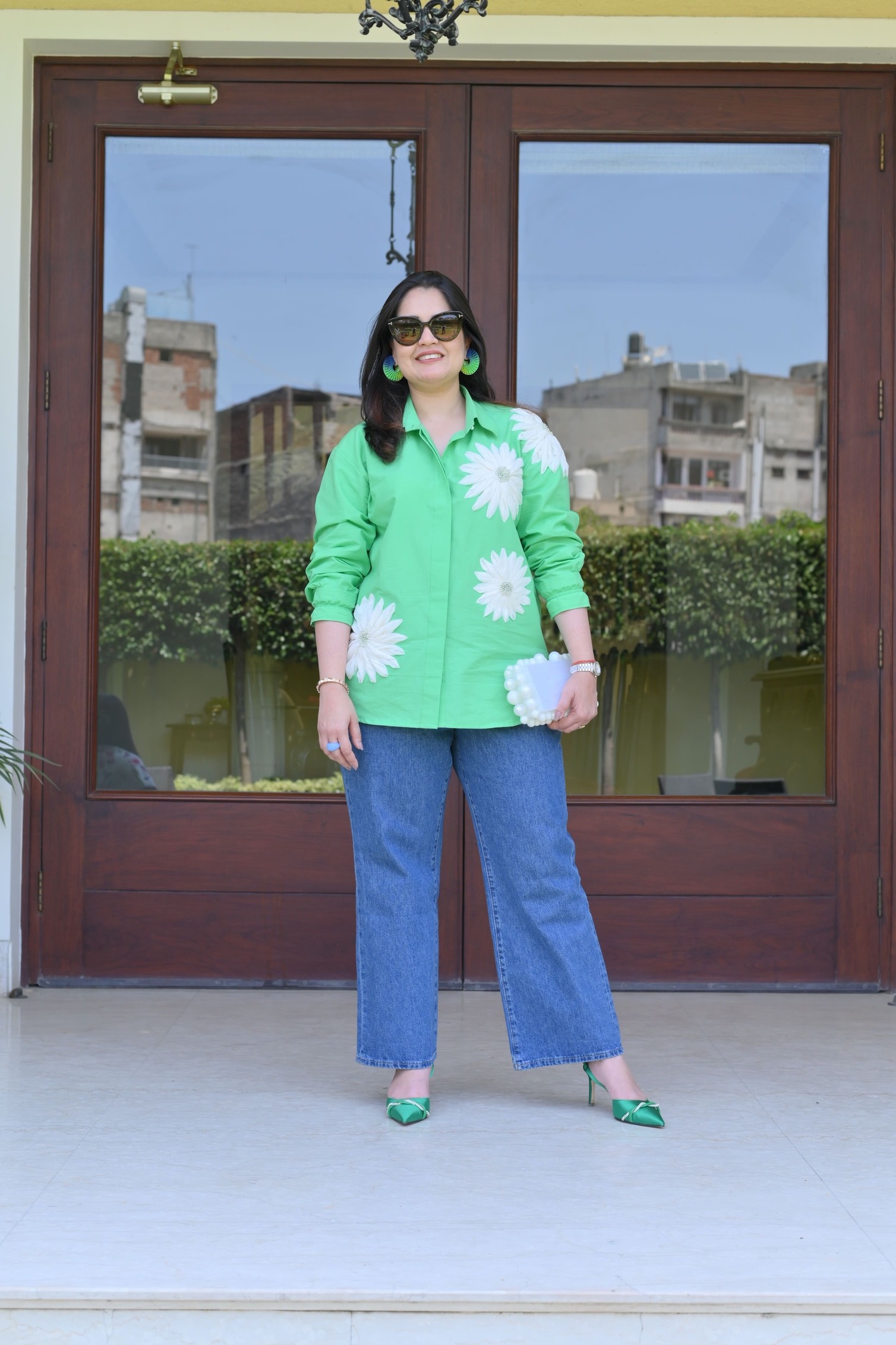 Organza 3-D Flowers Embroidered With Pearls Shirt