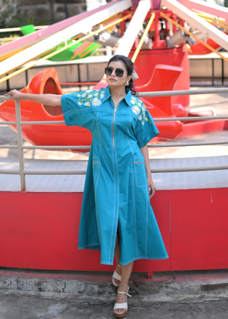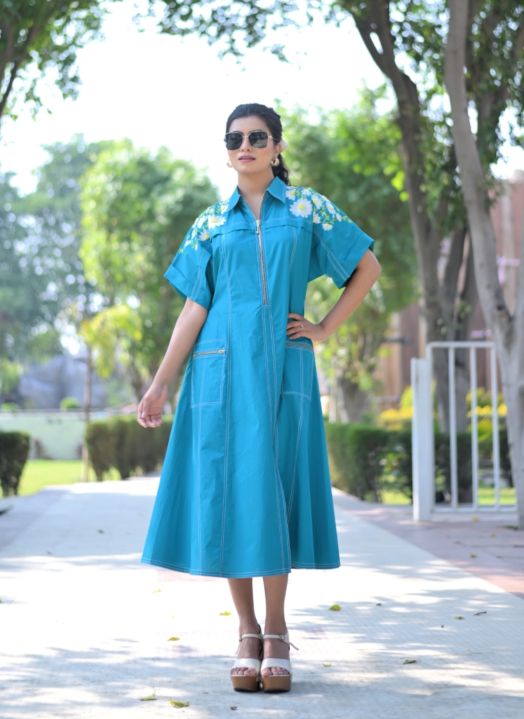 Embellished In Sunflowers With Pearls , Stylized With Zipper And Pocket Details