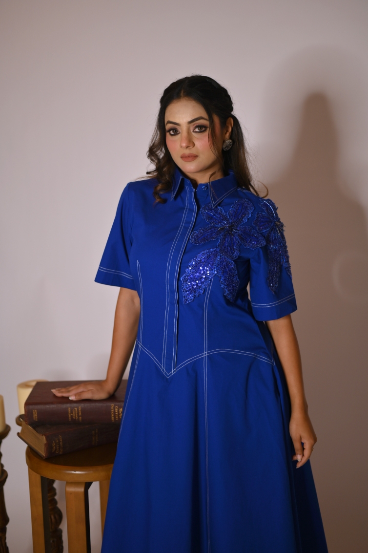 Stylised with Stitch Lines, Embroidered Midi dress