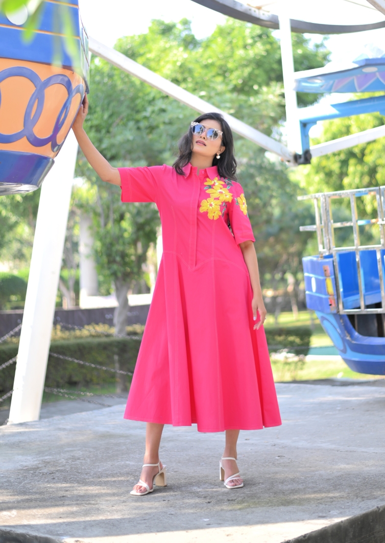 Stylised with Stitch Lines, Embroidered Midi dress