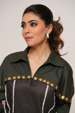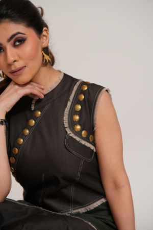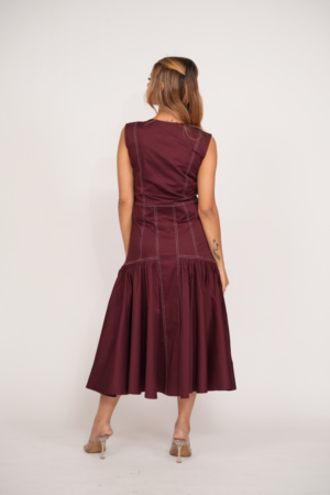 Hand Embellished Asymmetric Midi Dress With Contrast Stitch Lines