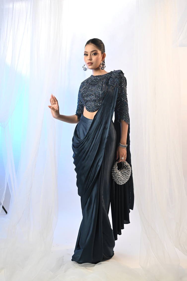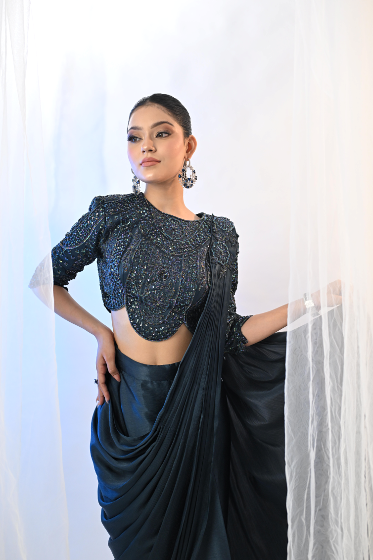 With Hancafted Blouse And Elegant Drape , This Is A Captivating Choice For Those Star Lit Occasions