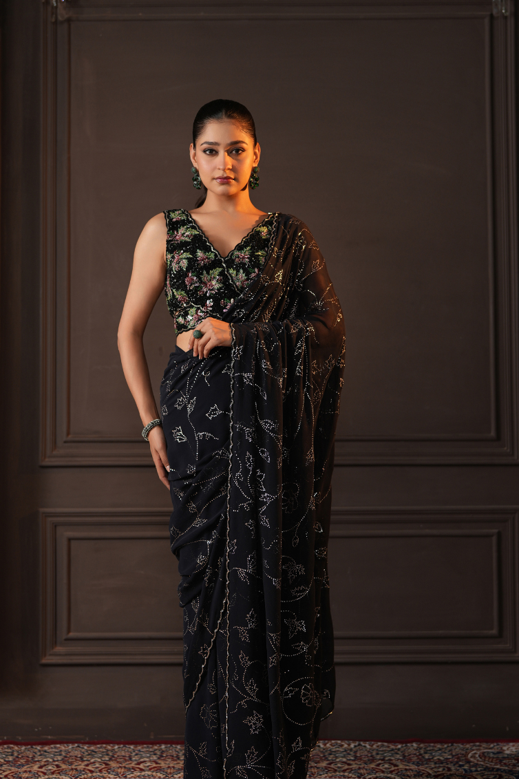 This is six yards of pure elegance that captures the breathtaking beauty of a moon-lit night sky.