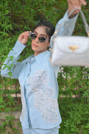 Hand Embellished in Thread and Buggle Beads Shirt.