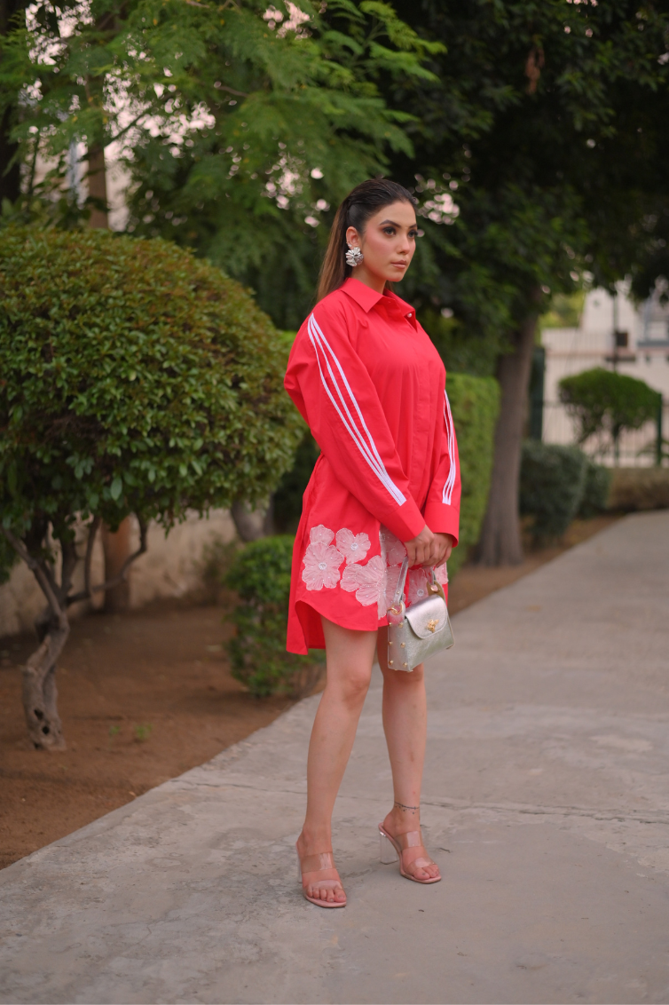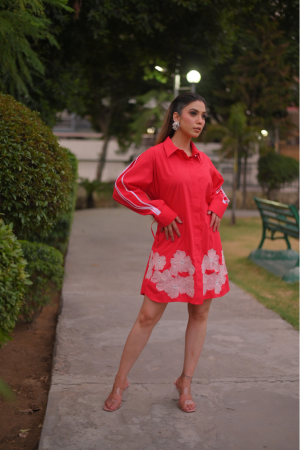Tulle Applique With Pleated Sleeves Dress